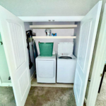 Enjoy the practical amenities that make your stay seamless and relaxing. Our dedicated laundry room comes equipped with a modern washer and dryer, perfect for extended stays and family needs. Step outside to unwind on the spacious deck, featuring comfortable seating ideal for soaking up the sun or enjoying peaceful evenings. For those traveling by car, the property offers a private parking space with an EV charger, adding convenience to your visit.