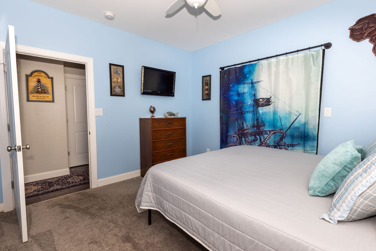 → Bedroom #2: Queen bed with smart TV for entertainment and relaxation