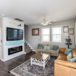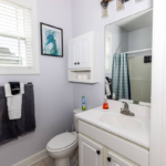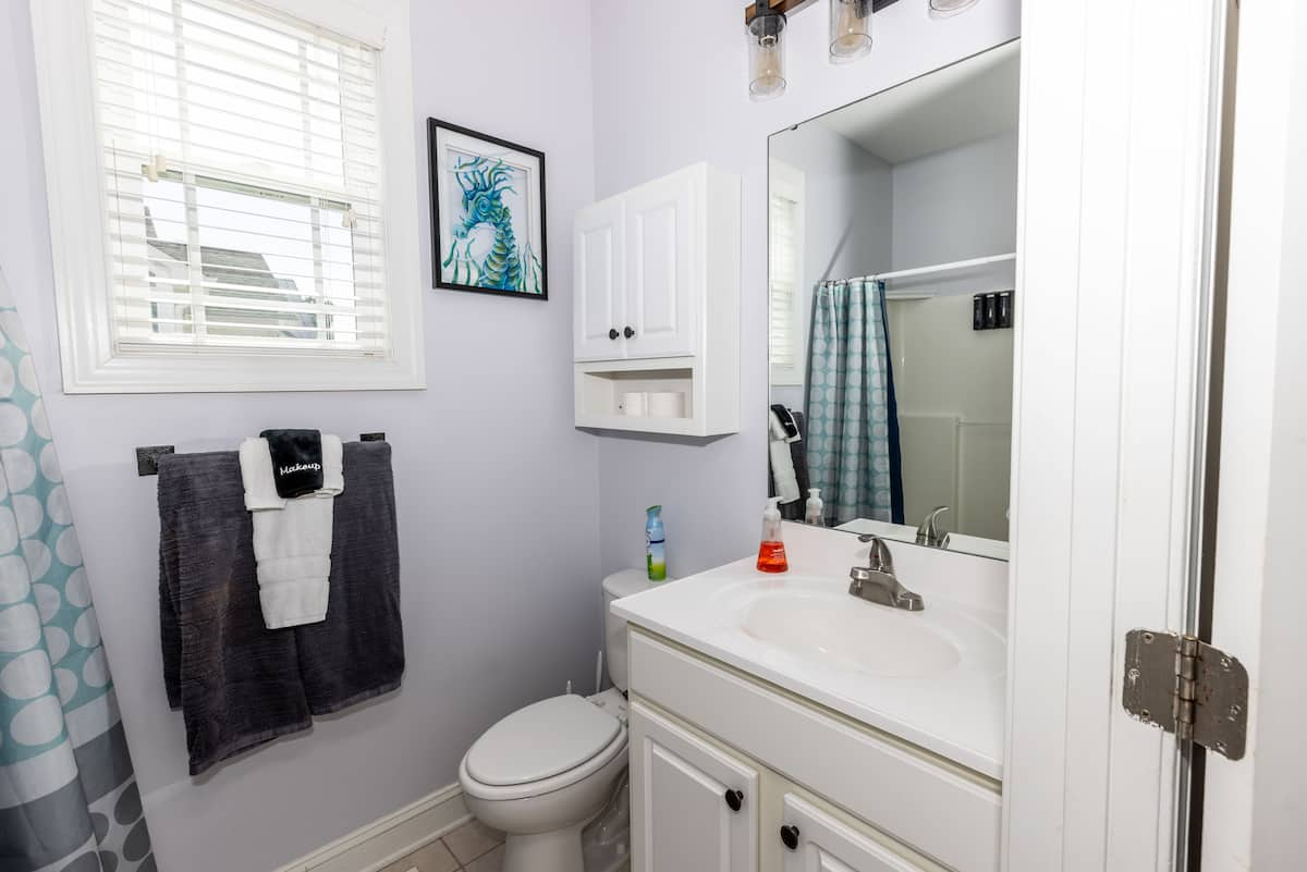 Discover the tranquility of our four serene bedrooms, each furnished with a comfortable queen bed and designed to provide a peaceful retreat. Two bedrooms are conveniently located on the main floor and two upstairs, ensuring privacy and comfort for all guests. Each floor shares a beautifully appointed bathroom, stylishly appointed with modern fixtures to offer a spa-like experience. The main floor bathroom features sleek design elements, while the upstairs bathroom includes a spacious tub and separate shower, perfect for unwinding.